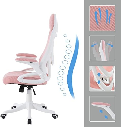 WORK COMFORTABLY: The high mesh-fabric backrest of this home office chair maximizes breathability. Designed with ergonomic supports for the neck, back, and head, At the same time, the thick sponge padded seat is soft and comfortable for longtime working or gaming.